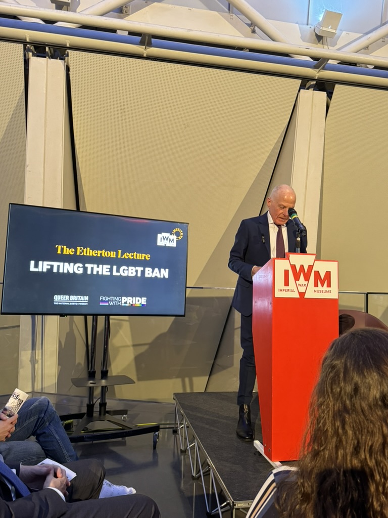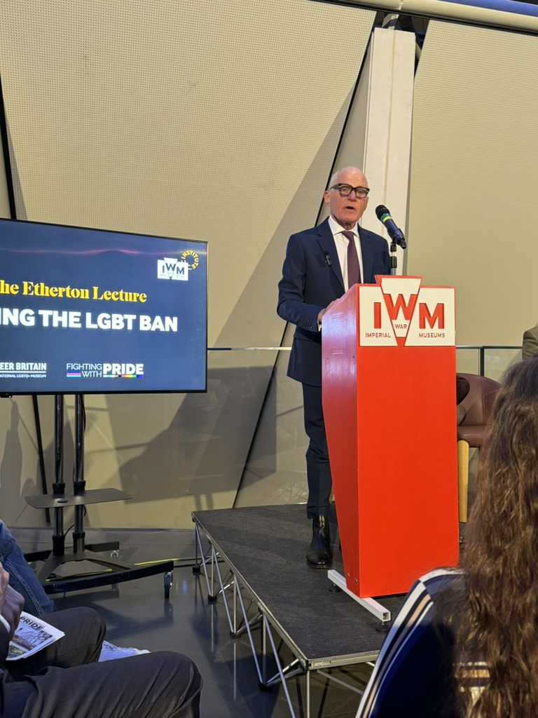 With the kind permission of Lord Etherton’s husband, Andrew Stone, Lord Cashman again delivered the lecture at an evening event in the Imperial War Museum London on Thursday 15th January 2026 recognising the 26th anniversary of the lifting of ‘The Ban’